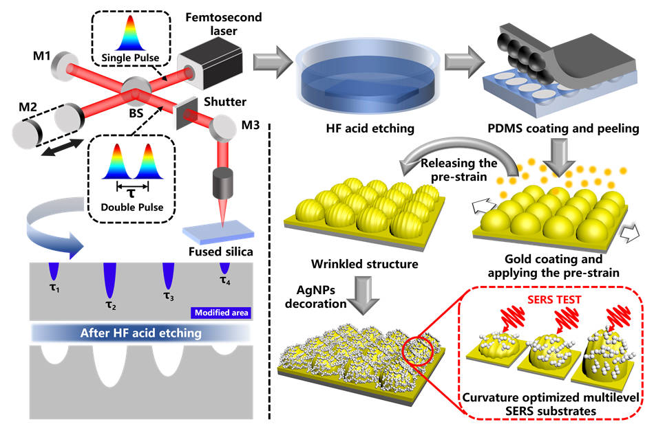 GA, UNITED STATES, April 28, 2026 /EINPresswire.com/ — Flexible surface-enhanced Raman scattering (SERS) substrates with high sensitivity are playing an important role in trace detection and chemical composition analysis. To enhance substrate sensitivity, Chinese scientists have proposed a femtosecond laser fabrication method for flexible SERS substrates based on electron dynamics control. By coupling pre-strain induction with chemical deposition, they constructed SERS substrates featuring multi-level, cross-scale micro-nano hybrid structures, achieving multi-scale electromagnetic field coupling. This work provides a crucial optical methodology for the design and fabrication of next-generation high-performance and customizable flexible SERS substrates, and promotes the cross-fertilization of micro-nano photonics and sensing technologies.
